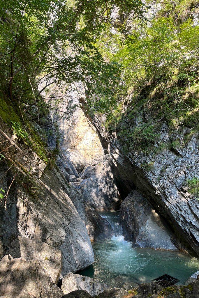 Nie wdając się dalej w kolorowe detale, Pirknerklamm, w odróżnieniu od innych dróg okutych, którymi szliśmy, jest relatywnie pozioma i odnosi się wrażenie, że sporą część szlaku po prostu trawersujemy. Przechodzimy z kamienia na kamień, ze skały na skałę, a z każdej strony otacza nas jedynie szum płynącej wody, sporo zieleni i odrobina słońca. Piękne miejsce.