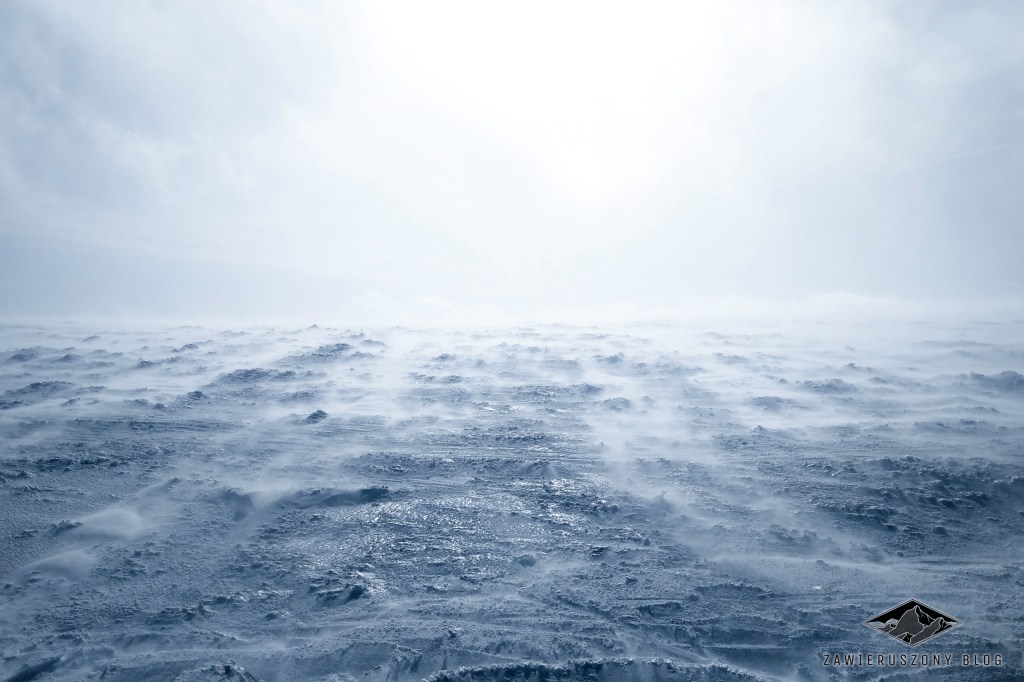 Weźmy pod uwagę podejście. Wiatr napiera, śnieg dociąża, człowiek się męczy i przy tym mocno rozgrzewa. Robi się gorąco. To aż prosi się o zrzucenie choć jednej warstwy ubrań, na przykład kurtki wiatroodpornej. Ale czasem to nie pomaga. Może trzeba też zdjąć grubą kurtkę. A potem bluzę. Raz zdarzyło mi się iść zimą w krótkim rękawku i było w porządku. Różnie bywa, trzeba się adaptować. Zwłaszcza, że przy schodzeniu sytuacja może być kompletnie odwrotna.