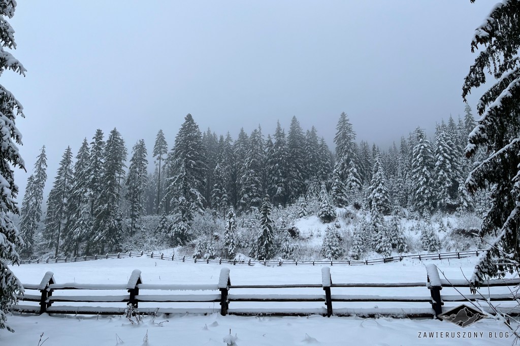 W ostatnich dniach warunki pogodowe nie rozpieszczają chyba na całym południu polski. 16 grudnia – piątek rano – wyjeżdżamy z Wrocławia w czteroosobowym składzie – ja, Basia, Jula i Artur. Na A4 śnieżnie i droga upływa dość powoli. Śnieg sypie i jest biało na długo przedtem, nim dojedziemy do Zakopanego.