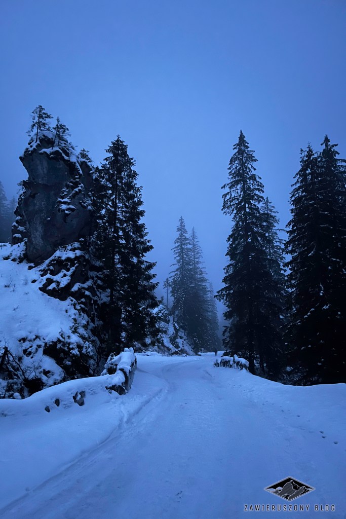 Po kilku godzinach drogi, czyli jakoś po 15, parkujemy w Dolinie Kościeliskiej. Zbieramy sprzęt, przebieramy się i powoli ruszamy w drogę. Tego dnia czeka nas jedynie krótkie podejście, ale nawet jak na to zostało nam niewiele czasu do zmroku.
