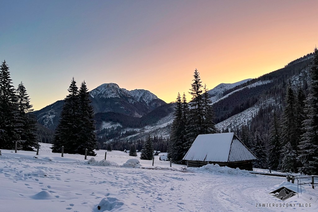 Gdy opuszczamy Dolinę Jarząbczą i wchodzimy łagodnie w Dolinę Chochołowską, dzień przechodzi szybko w późny wieczór. Ale nawet w takim zmierzchu, zimowe pejzaże wciąż przykuwają oko i w efekcie raz idę szybciej, a raz wolniej – w zależności od tego, gdzie i jakie kadry do uwiecznienia wyłapuje moje oko. Jest ich sporo, choć – ostatecznie – najlepiej wypadają we wspomnieniach, w mojej głowie. Ale zdjęć i tak robię całe mnóstwo, zgodnie z tym, co już tu kiedyś napisałem[2].
