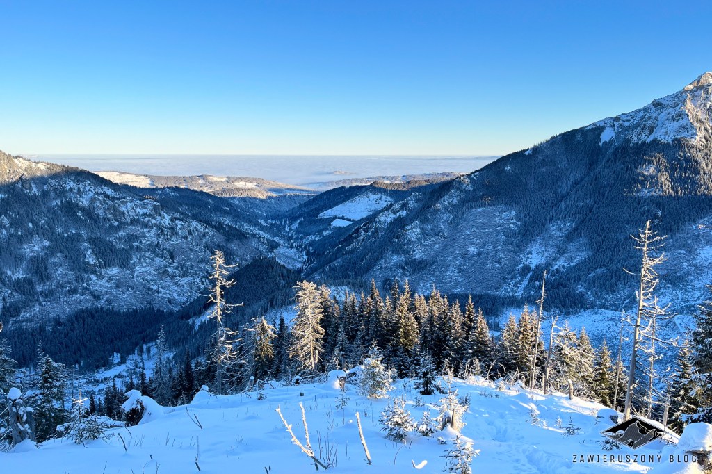 Zimowy poranek – oprócz dość wymagającego podejścia w stronę Trzydniowiańskiego Wierchu (1758 m n.p.m.) i Kończystego Wierchu (2002 m n.p.m.) – zapewnia nam niesamowite widoki. Skondensowana nad dolinami mgła, roztaczająca się między masywami górskimi, nie bez powodu budzi skojarzenie z morzem rozlewającym się między wyspami. Aż zacząłem żałować, że ostatecznie nie zdecydowałem się na kupno jakiegoś lepszego aparatu.