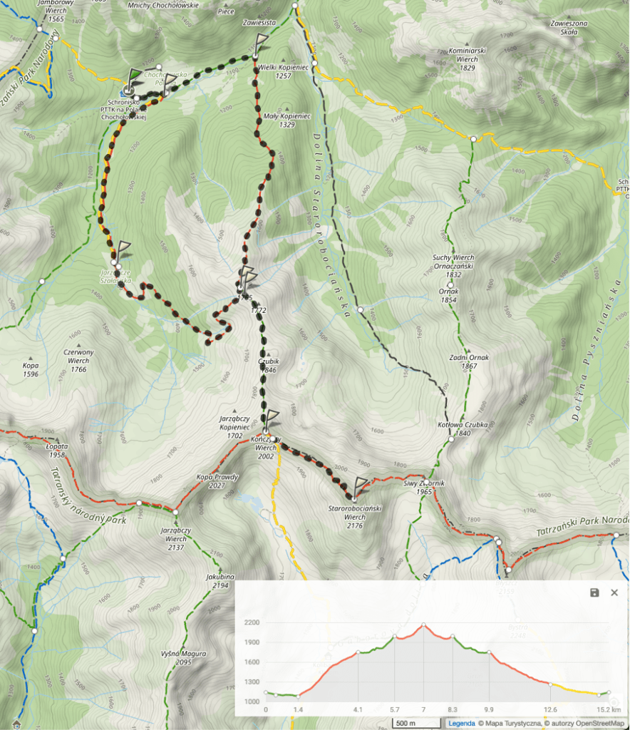 Pozwolę sobie pominąć kilkugodzinny wypad na Grzesia oraz względnie krótką ścieżkę do Doliny Kościeliskiej. Zatem, co do zdobywania Starorobociańskiego Wierchu, mamy tu następujące liczby: