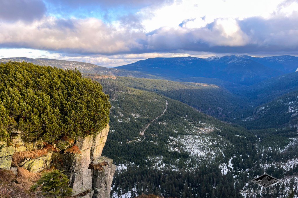 Tak czy inaczej, nad wodospadem Panczawy zatrzymujemy się na dłuższą chwilę, żeby posiedzieć, zjeść coś i napić się herbaty. Odbijając na chwilę od tematów ciekawostek i liczb, muszę przyznać, że po czeskiej stronie Karkonoszy widokówki potrafią naprawdę pozytywnie zaskoczyć. Stąd ta dłuższa chwila na przerwę – zatrzymujemy się też po to, by popodziwiać krajobraz Doliny Łaby z meandrującą rzeką oraz zamykające go fragmenty Śląskiego i Czeskiego Grzbietu.