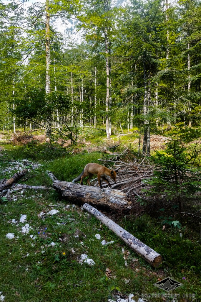 Grzecznie usuwamy się na bok i przepuszczamy zwierzaka. Widać, że jest przyzwyczajony do kultury ustępowania miejsca na szlaku turystom idącym pod górę. Spokojnie nas mija i rusza przed siebie. Trzeba przyznać, że Alpy Julijskie potrafią zaskoczyć różnorodnością spotykanej fauny.