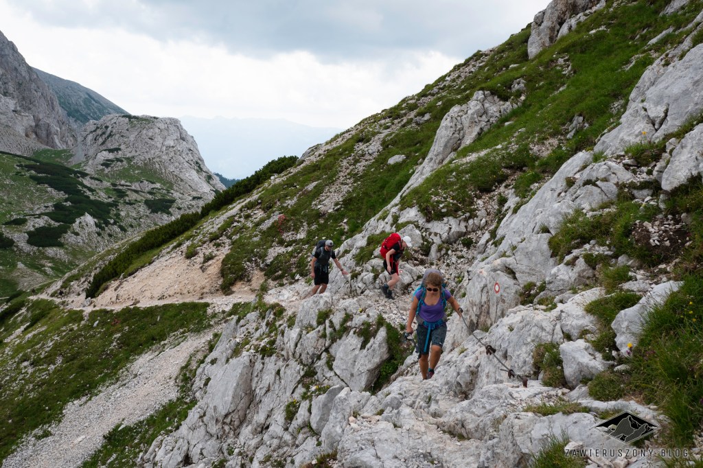 - Choć większość trasy da się pokonać na nogach, uważam że zabranie uprzęży, lonży i kasku nie było złym pomysłem. Bezpieczeństwo przede wszystkim, nawet jeżeli „da się” pokonać wejście na sam Triglav i bez tego.