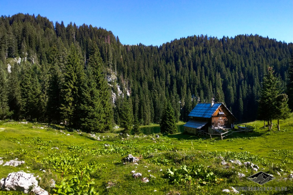 Wróćmy jednak w góry. Trasa na skrzyżowanie Vogar / Blato upłynęła zadziwiająco szybko. Ucieszeni, że ominął nas spory kawał nudnego podejścia, ruszamy w stronę schroniska Koča na Planini pri Jezeru. Urocze miejsce. Może niekoniecznie samo schronisko, ale z całą pewnością jego okolica. Jezioro w tle, drewniane chatki i ta zieleń…