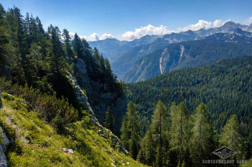 Ostatecznie, nie zabiera nam to zbyt dużo czasu. Naszych Słoweńców – lub raczej domniemanych Słoweńców – mijamy jeszcze kilkukrotnie na kolejnych odcinkach trasy, ale to właśnie nad Rjavo ostatecznie się żegnamy. Z wykorzystaniem zoomu cyfrowego łapię jeszcze kilka kadrów, w tym widoczne stosunkowo blisko schronisko Zasavska koča na Prehodavcih, a także kilka półek skalnych. W końcu zaczynamy zawracać.