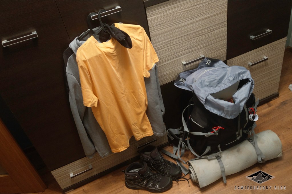 Śpiwór, karimatę, apteczkę, jedzenie i picie, ciuchy na przebranie, kurtkę przeciwdeszczową, bluzę, koszulkę termoaktywną, ładowarkę, powerbank, czołówkę, baterie, ręcznik, żel pod prysznic, dezodorant, pastę i szczoteczkę do zębów, motywację, dobry nastrój, upór i świetny team w postaci Basi i Juli. To ostatnie było najważniejsze – razem daliśmy radę wytrzymać ze sobą te 48 godzin. Sam, jak przypuszczam, nie byłbym w stanie.