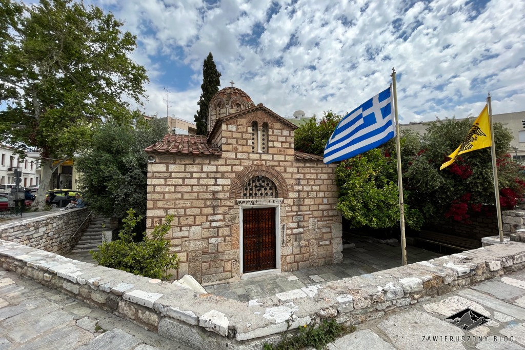 Po przerwie na jedzonko, spacerem przecinamy kawałek centrum, w tym też Monastiraki i Plakę. Potem, już w Thissio, zahaczając o market wracamy do mieszkania. Po chwili odpoczynku w mieszkaniu – przecież od wczesnych godzin jesteśmy na nogach – wyruszamy na ostatni spacer tego dnia: na wzgórza Pnyks i Fillopappou. Z dzielnicy Thissio spacer jest w tamte miejsca na szczęście dość krótki. Po drodze przecinamy kolejne uliczki miasta, pnąc się powoli ku górze. Mijamy robiący wrażenie kościół prawosławny Agia Marina, a zaraz potem przechodzimy obok terenu Obserwatorium Narodowego, obok którego rzuca się w oczy zwieńczony kopułą budynek, w którym znajduje się Teleskop Doridisa.