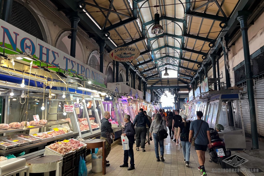 Dalej, jakby dla kontrastu, przecinamy w poprzek Centralny Rynek Komunalny w Atenach, gdzie największe wrażenie – dobre lub złe, zależy kogo pytać – robią stragany z mięsem w głównym pawilonie, swoją drogą spowitym niezbyt przyjemnym zapachem. Ale to tylko kilka minut, bo potem przenosimy się poza ścisłe centrum, przechodząc przez owiany złą sławą plac Omonia, żeby ostatecznie wylądować na chodniku przy zatłoczonej arterii 28ης Οκτωβρίου 18 (28 października 18, o ile dobrze rozumiem tłumaczenie), która zaprowadzi nas już do samego muzeum.