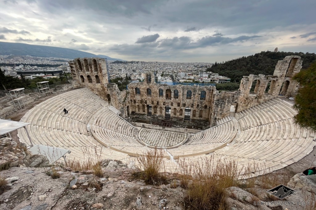 Pierwszym punktem rzucającym się w oczy jest Odeon Heroda Attyka. Budowla na styl amfiteatru, przeznaczona na występy teatralne i muzyczne. Sądzę, że niejeden współczesny artysta nie pogardziłby wystąpieniem w takim budzącym respekt miejscu i mogę tylko zgadywać, że dwa tysiące lat temu wrażenie wywierane przez tę budowlę na widzów było takie samo, a z pewnością nie mniejsze. Zwłaszcza, że w tamtym okresie odeon miał jeszcze swoje oryginalne, drewniane elementy, które zanikały powoli z duchem czasu.