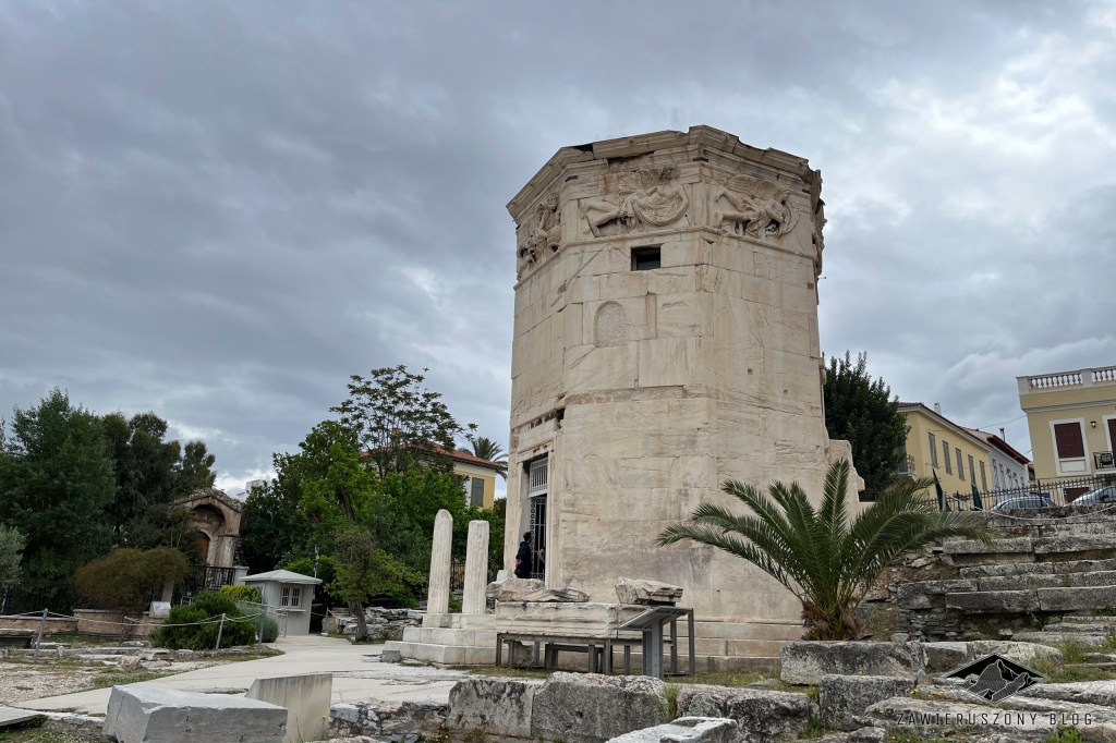 Zaczynamy od wejścia na teren rzymskiej agory, czyli pozostałości po dawnej codzienności – miejscu spotkań, budynkach urzędowych czy sklepikach. Niewiele z tego wszystkiego zostało, więc chyba największe wrażenie robi Wieża Wiatrów, nazywana tak ze względu na umieszczone na każdej z ośmiu ścian reliefy, przedstawiające osiem tradycyjnych wiatrów, wiejących z ośmiu kierunków[3].