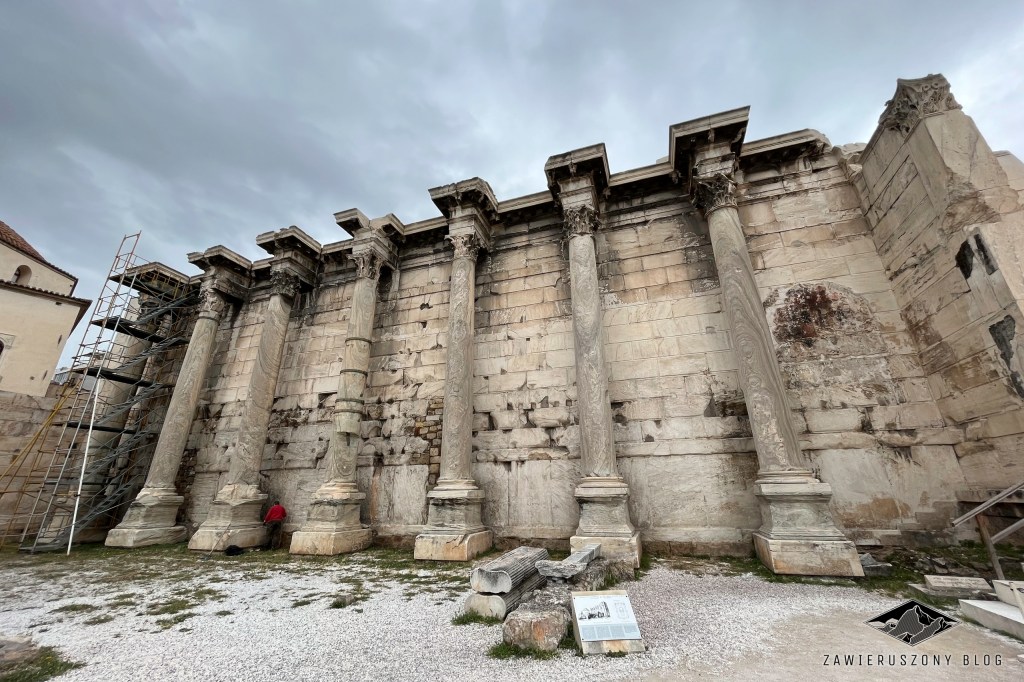 Kolejnym punktem wycieczki jest biblioteka Hadriana. Pozostałości kolejnej partii starożytnych zabudowań, które fala historii przeniosła przez kolejne budowy, remonty, trzęsienia ziemi i zmiany władzy, aż ostatecznie wyrzuciła na brzeg współczesności w postaci ruiny dostępnej do zwiedzania w centrum stolicy prawosławnego kraju, tuż obok placu Monastiraki – pełnego zabytków kultury muzułmańskiej.