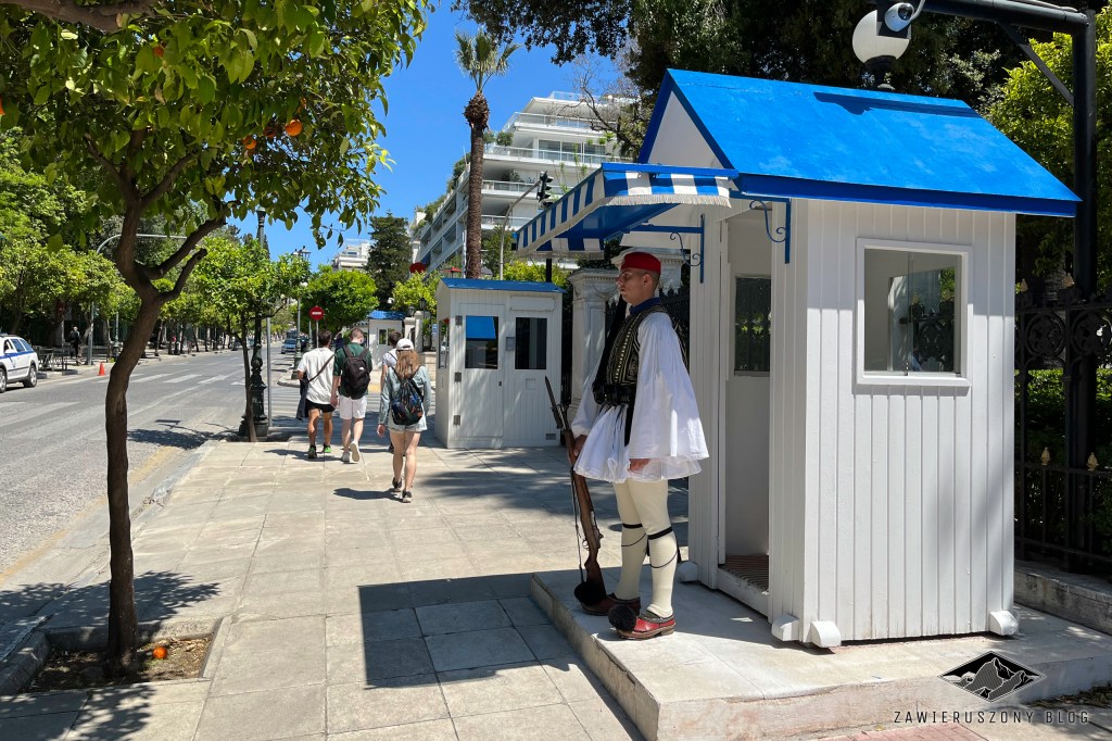 Plan na niedzielny poranek układa się sam. Tego dnia na placu Syntagma, o godzinie 11 czasu lokalnego, można zobaczyć uroczystą zmianę warty pod budynkiem greckiego parlamentu. Oddziałowi ewzonów – elitarnej jednostki wojskowej w tradycyjnych strojach – towarzyszy orkiestra i oddział żołnierzy, a cała ulica przy placu Syntagma jest na tę okazję zamykana.
