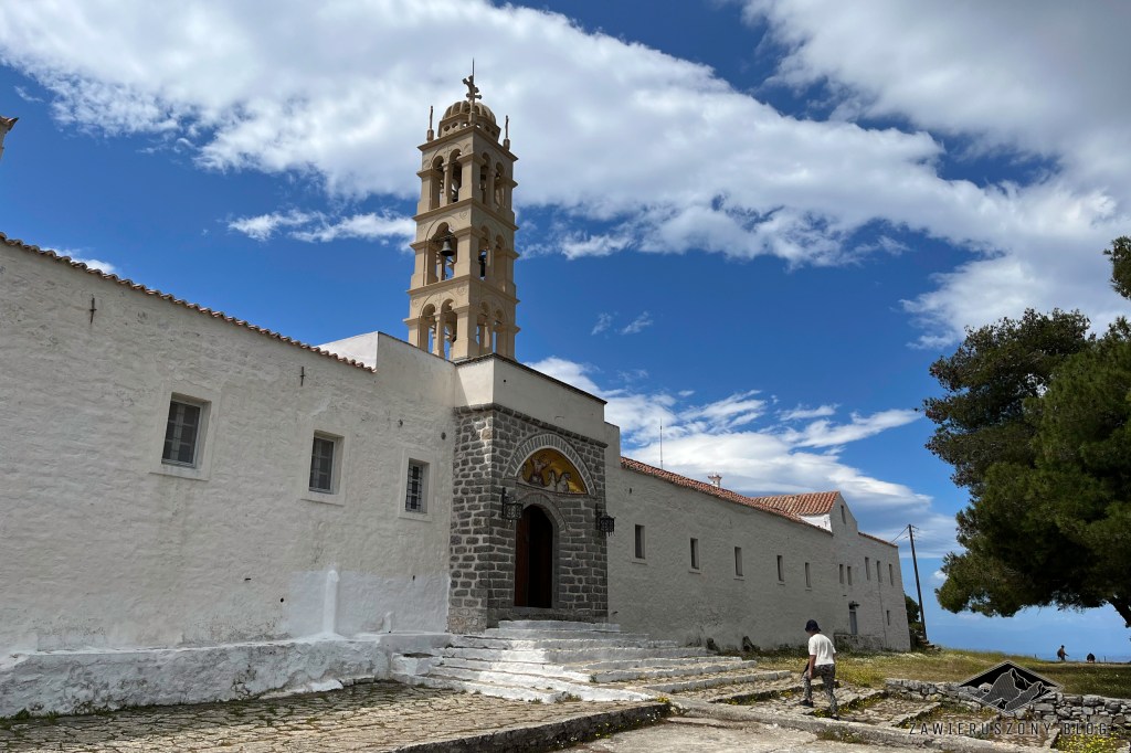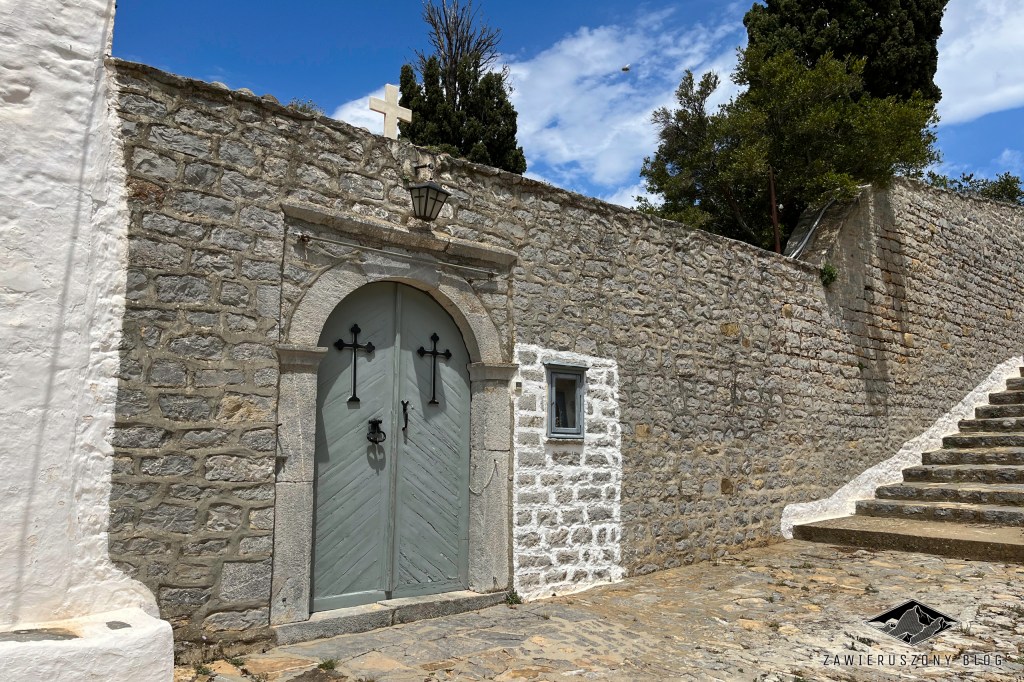 Około godziny 11, będąc już ponad miejscowością, zaczynamy marsz w kierunku klasztoru. Z każdym krokiem wysokość nad poziomem morza wzrasta, ukazując coraz to nowe krajobrazy Hydry i otaczających ją wód. Dojście do Klasztoru Proroka Eliasza zajmuje nam mniej więcej 40 minut. Droga pod górę pozwala odpocząć od cywilizacji jeszcze bardziej niż sam pobyt w Idrze – spotykamy tu niewielu ludzi i w zasadzie żadnych sklepów.